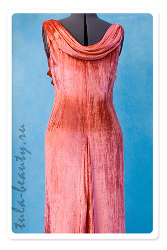 СТАЛЬНОЕ С ДРАПИРОВКОЙЭлегантное вечернее платье шикарного стального оттенка. Ассиметрично уложенные драпировки раскрывают всю красоту и блеск атласного французского шелка. |